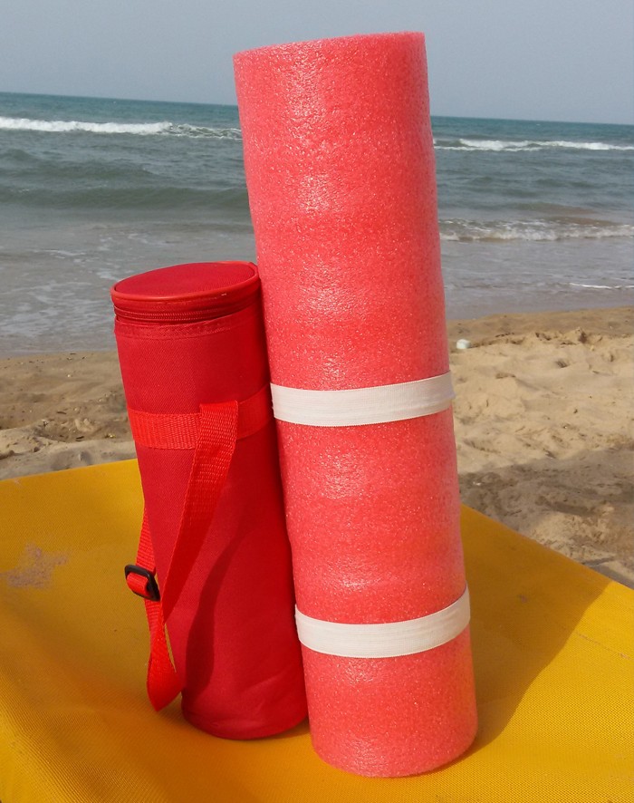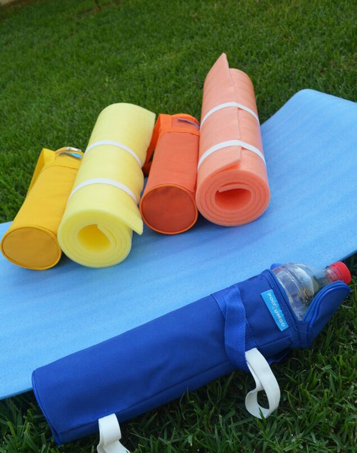 Mats made with JUMBOMOUSSE for various uses, with bottle cooler bag (camping, sports, beach, etc ...)